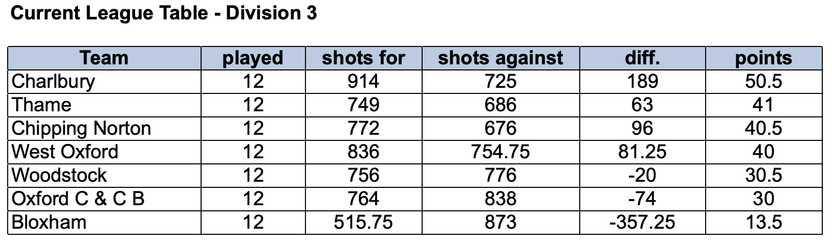 In 2023 and captained by John Rawson, we won 8 of our 10 matches. This was one more win and the same number of points as the club finishing top but we finished runners up because of a lower shot difference.