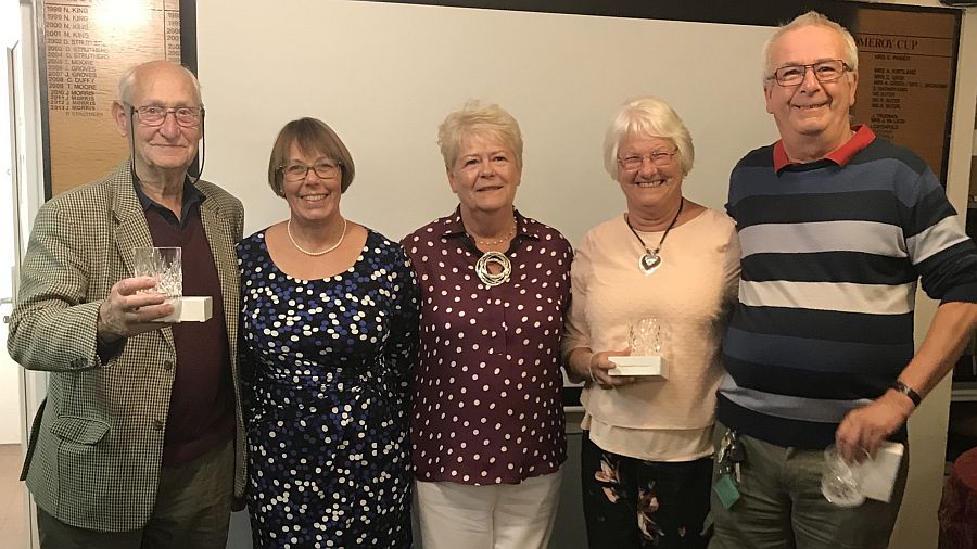 Richard, Jan and Steve, three members of Team J, the Friday League Winners of 2018, together with two representatives from Lightfoots